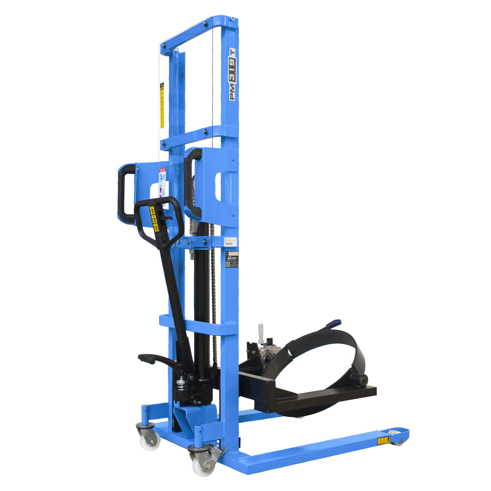 A gira-tambor PM319T da Paletrans é ideal para tambores de 200 litros, com capacidade de 300 kg. Totalmente manual, conta com abraçadeira ajustável para maior segurança e sistema de entornamento simples e preciso. A elevação é feita por alavanca ou pedal, e a descida pelo gatilho no timão.